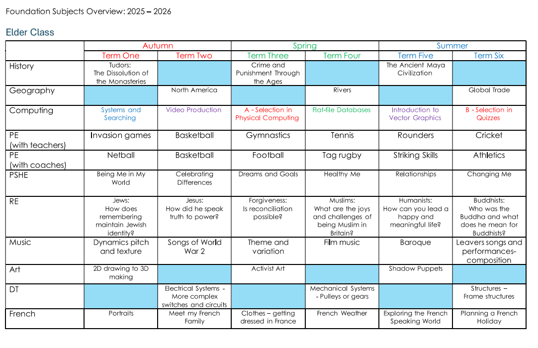 Year 6 is the final year of Primary school and packed full of interesting topics and learning as well as exciting trips and opportunities. We will learn about the dissolution of the monasteries, rivers, global trade and evolution among many others. This year will also include our activity week, which will provide the children with the opportunity to learn new skills and try something new. We will prepare for our SATS tests as well as developing our acting techniques in our end of year performance.